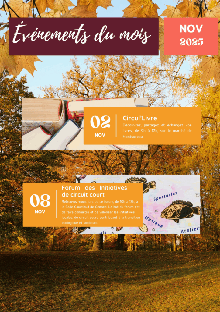 LE SAMEDI 8 NOVEMBRE 2025, A GENNES. L’association Ligériens de Cœur a pour objectif de développer l’économie sociale et solidaire et d’encourager le développement durable notamment grâce au circuit-court. Dans ce cadre, nous vous invitons à rencontrer l’association lors du « forum des initiatives de circuit court », le samedi 08 novembre 2025 de 10h à 13h, à…